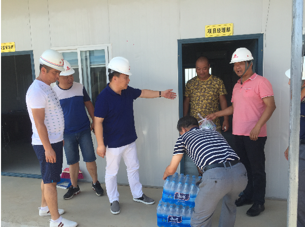 “現(xiàn)在天氣炎熱,大家要注意高溫施工安全,做好防暑降溫工作!”每到一處,公司總經(jīng)理和副總就耐心跟施工現(xiàn)場(chǎng)人員叮囑一番,同時(shí)要求相關(guān)負(fù)責(zé)人千方百計(jì)做好員工的后勤保障工作,加強(qiáng)對(duì)飲用水、食品和工地食堂衛(wèi)生管理,確保一線人員身體健康。慰問組人員親手把礦泉水、藥品等防暑降溫用品送到施工現(xiàn)場(chǎng)人員手上,施工現(xiàn)場(chǎng)負(fù)責(zé)人一致表示,將按照集團(tuán)公司領(lǐng)導(dǎo)的要求,認(rèn)真做好施工現(xiàn)場(chǎng)防暑降溫工作和安全生產(chǎn)工作,保證工程各項(xiàng)工作的順利開展。