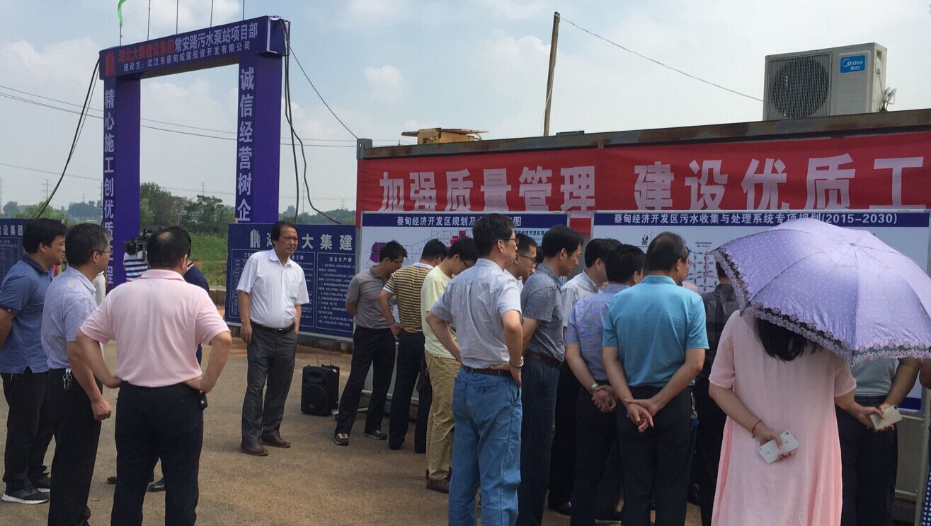 2016年8月10日,武漢市人大常委會副主任胡洪春一行前往我司項目部常安路污水泵站工程項目處,就“關于加快工業(yè)園區(qū)環(huán)?;A設施建設,促進工業(yè)園區(qū)健康發(fā)展案續(xù)辦方案”工作進行調(diào)研。