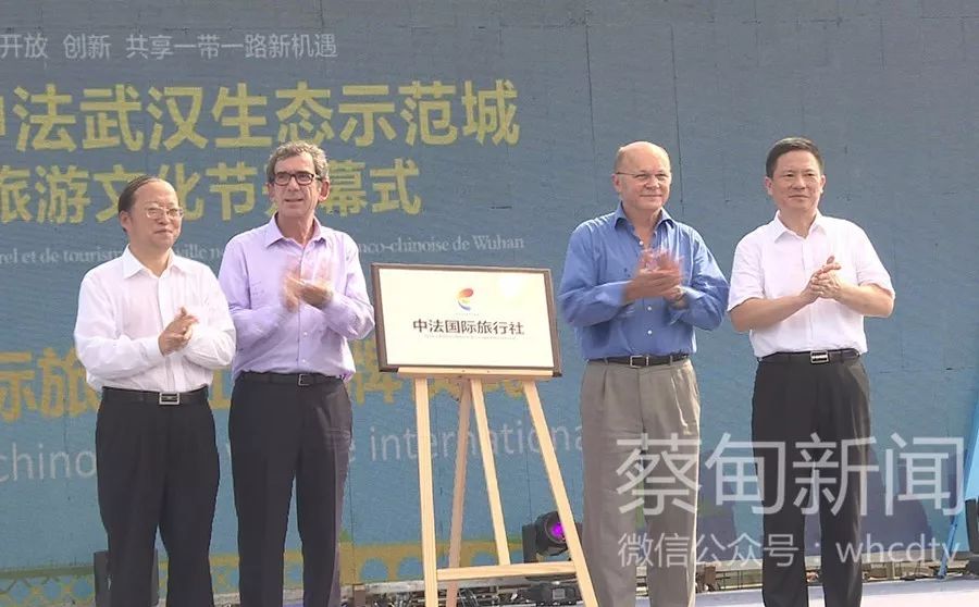 法國駐華大使黎想、法國生態(tài)與團(tuán)結(jié)化轉(zhuǎn)型部城市可持續(xù)發(fā)展協(xié)調(diào)人克里斯汀?樂維、副市長龍良文、蔡甸區(qū)委書記、中法武漢生態(tài)示范城管委會主任劉子清共同為“中法國際旅行社”揭牌。