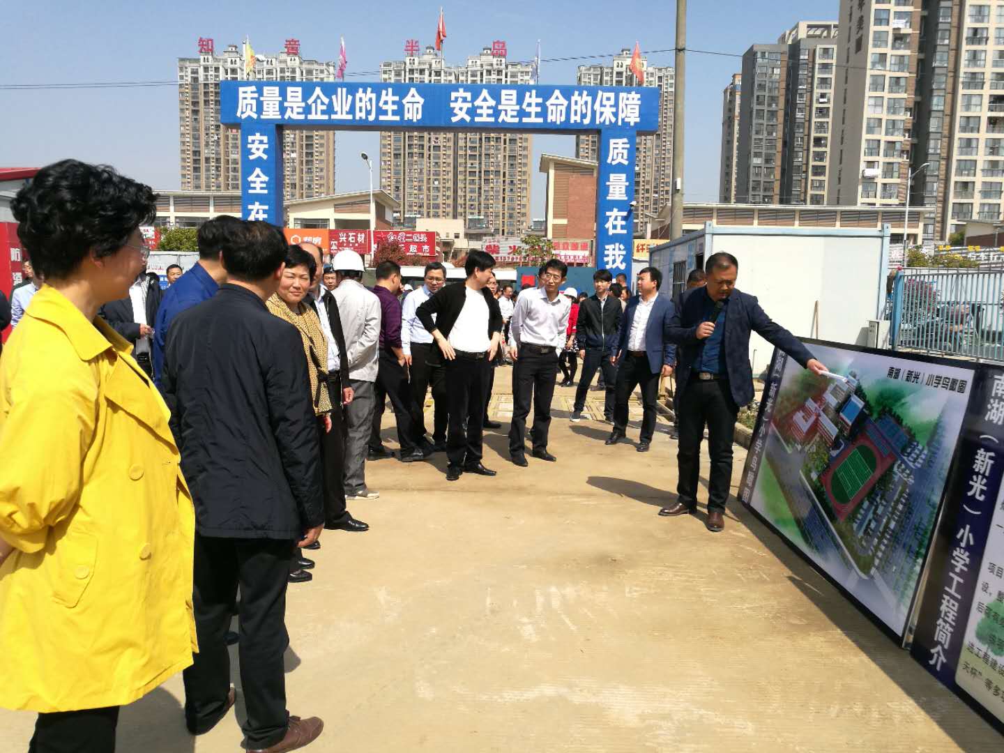 蔡甸區(qū)區(qū)長彭巧娣詳細詢問了南湖(新光)小學(xué)項目的建設(shè)情況,對負責(zé)承建的施工單位——大集建設(shè)集團給予了高度評價,并指出后期要在確保質(zhì)量的同時保證進度,確保9月1日該校能順利開學(xué)。
