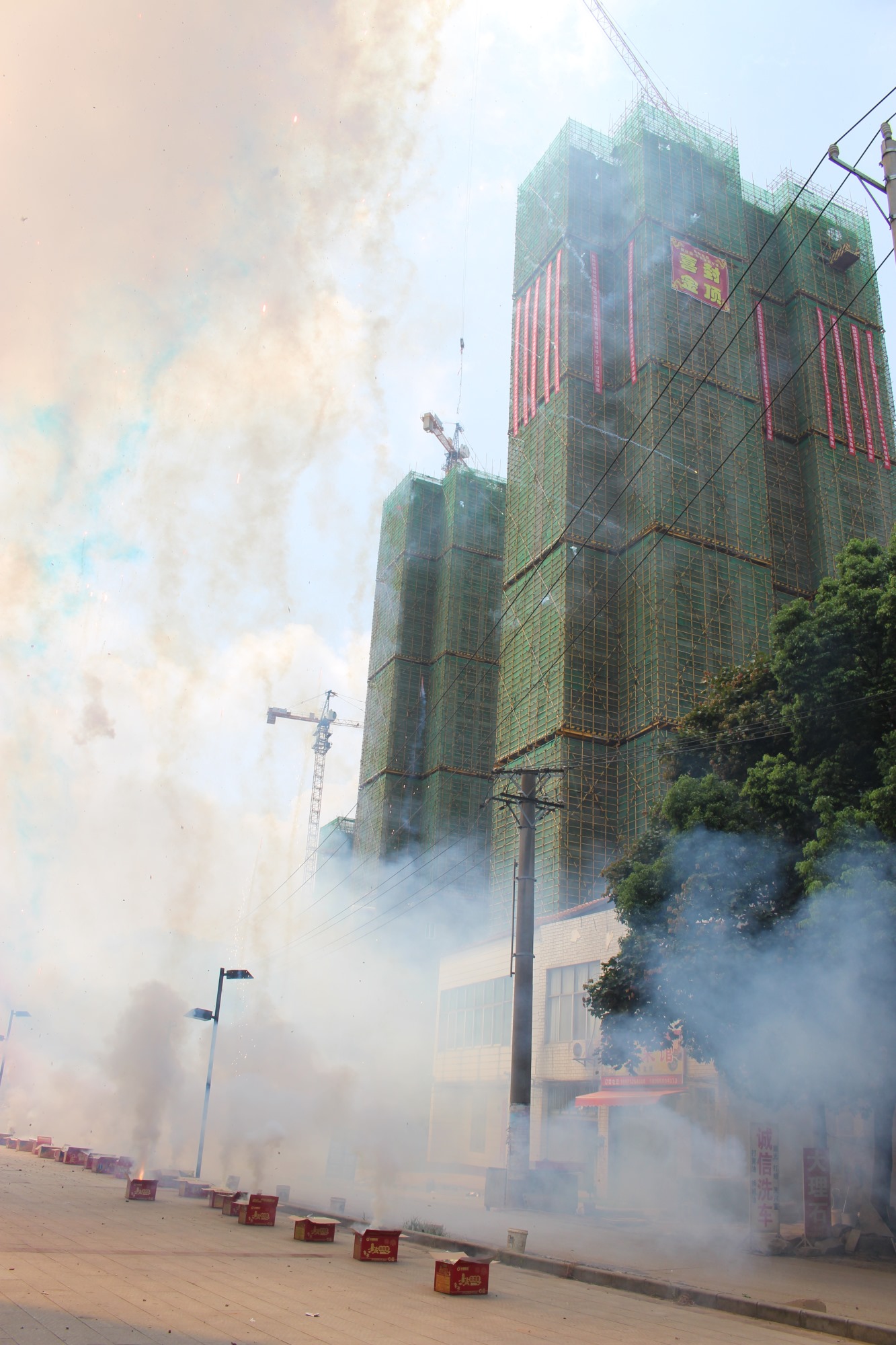 在熱鬧喜慶的禮炮鞭炮聲中