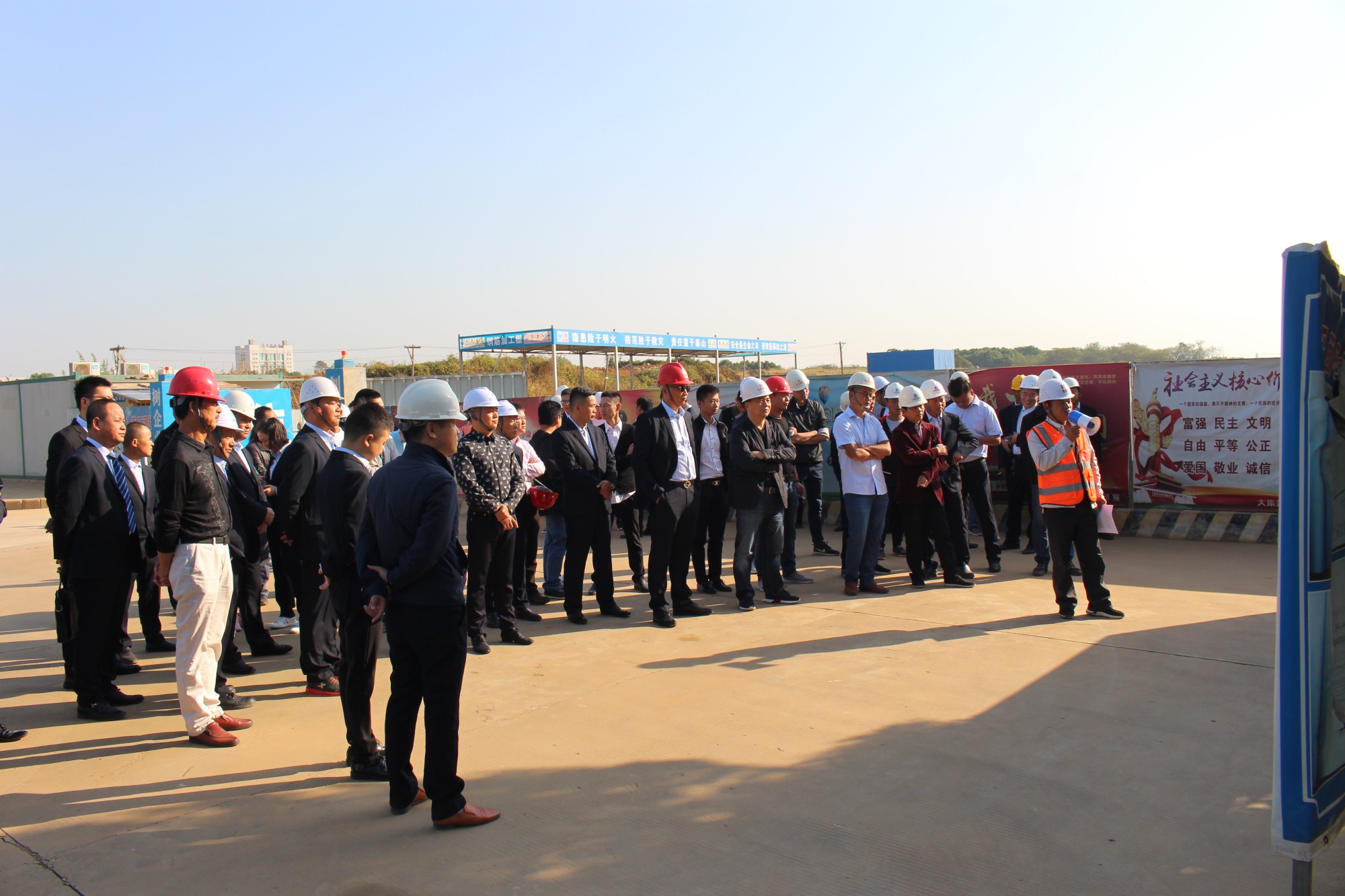 上午,所有參會人員首先來到大沌南路項(xiàng)目施工現(xiàn)場進(jìn)行參觀。在大沌南路項(xiàng)目負(fù)責(zé)人何廣州的帶領(lǐng)下,大家對大沌南路項(xiàng)目的工程概況、安全文明施工、新工藝、工程質(zhì)量與進(jìn)度管控等方面的情況進(jìn)行了詳細(xì)地觀摩與學(xué)習(xí)。