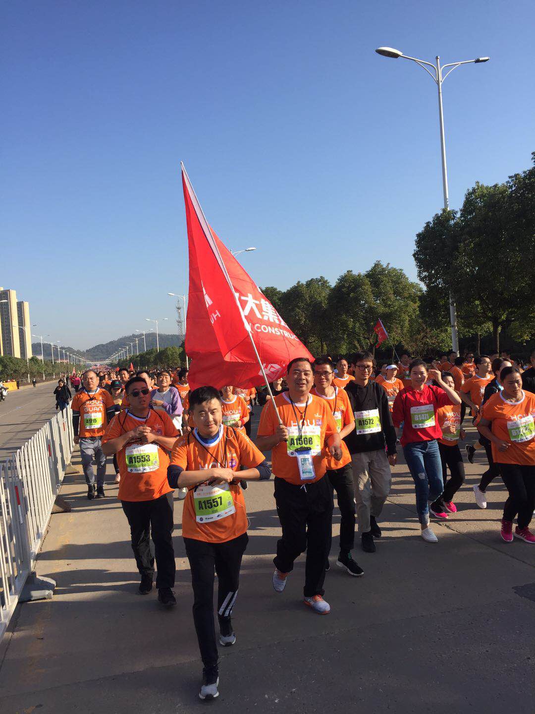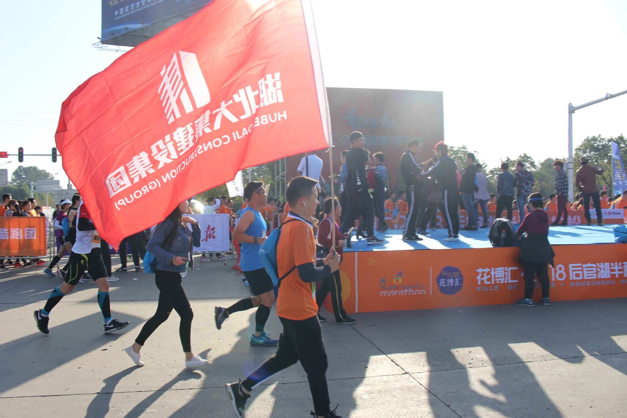 此次比賽共有5000名半程(21.0975公里)選手,5000名健康跑(8公里)選手參加。來(lái)自湖北大集建設(shè)集團(tuán)的50余名參賽選手也成為了這道亮麗風(fēng)景線的一份子。 開(kāi)跑前,大家都摩拳擦掌,做足熱身功夫。在比賽過(guò)程中,集團(tuán)選手精神飽滿、熱情高漲,互相加油,互相鼓勵(lì),與頂尖選手、與熱愛(ài)運(yùn)動(dòng)的人一起,在風(fēng)景宜人的賽道上微笑著跑完了全程。