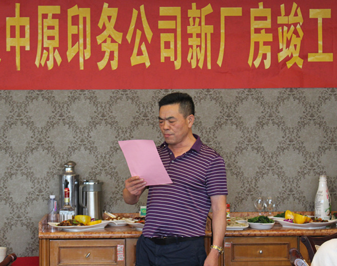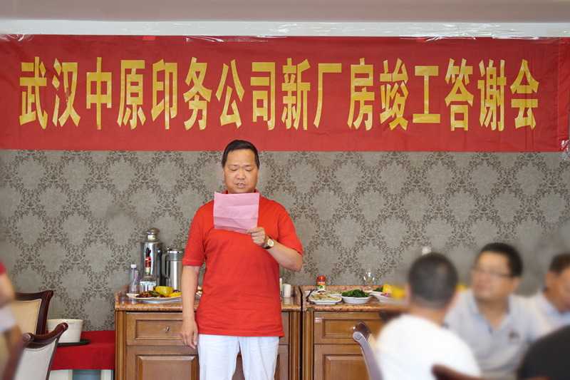 6月26日,武漢中原印務(wù)有限責(zé)任公司隆重舉行新廠房竣工答謝會,集團(tuán)副總經(jīng)理徐家富、項目經(jīng)理田建新、招投標(biāo)部部長胡鵬、財務(wù)部部長鄧雪芬等受邀出席。