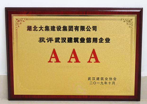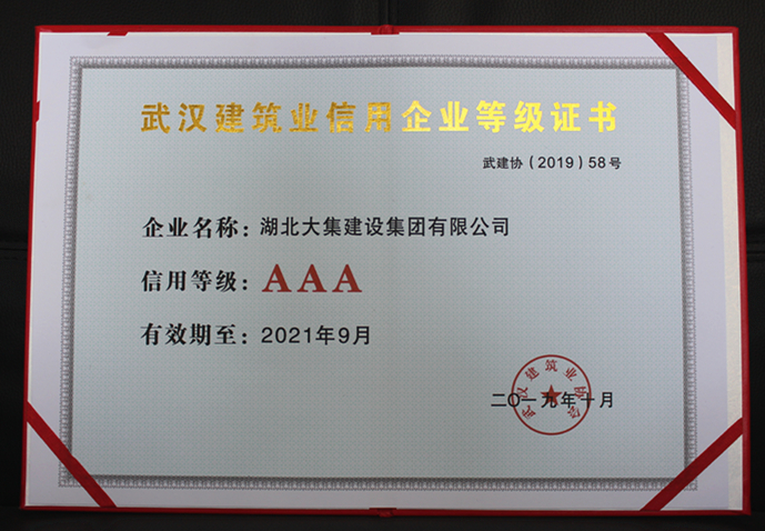 近日,經(jīng)武漢市各區(qū)建筑業(yè)協(xié)會(huì)推薦、專家評(píng)委初審、市各大站辦審核、評(píng)定領(lǐng)導(dǎo)小組和會(huì)長(zhǎng)辦公會(huì)審定,并在武漢市公共資源交易中心和武漢建筑業(yè)協(xié)會(huì)官網(wǎng)同步公示無(wú)異議后,湖北大集建設(shè)集團(tuán)有限公司再次獲評(píng)“武漢建筑業(yè)AAA級(jí)信用企業(yè)”。