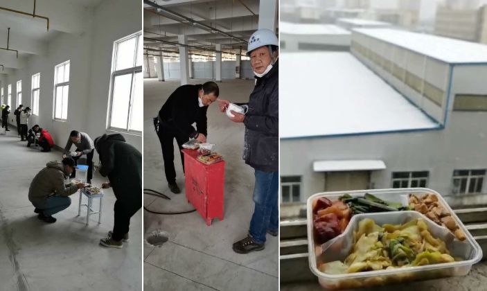 董事長徐濤、各位項目經(jīng)理與全體施工人員因陋就簡的用餐