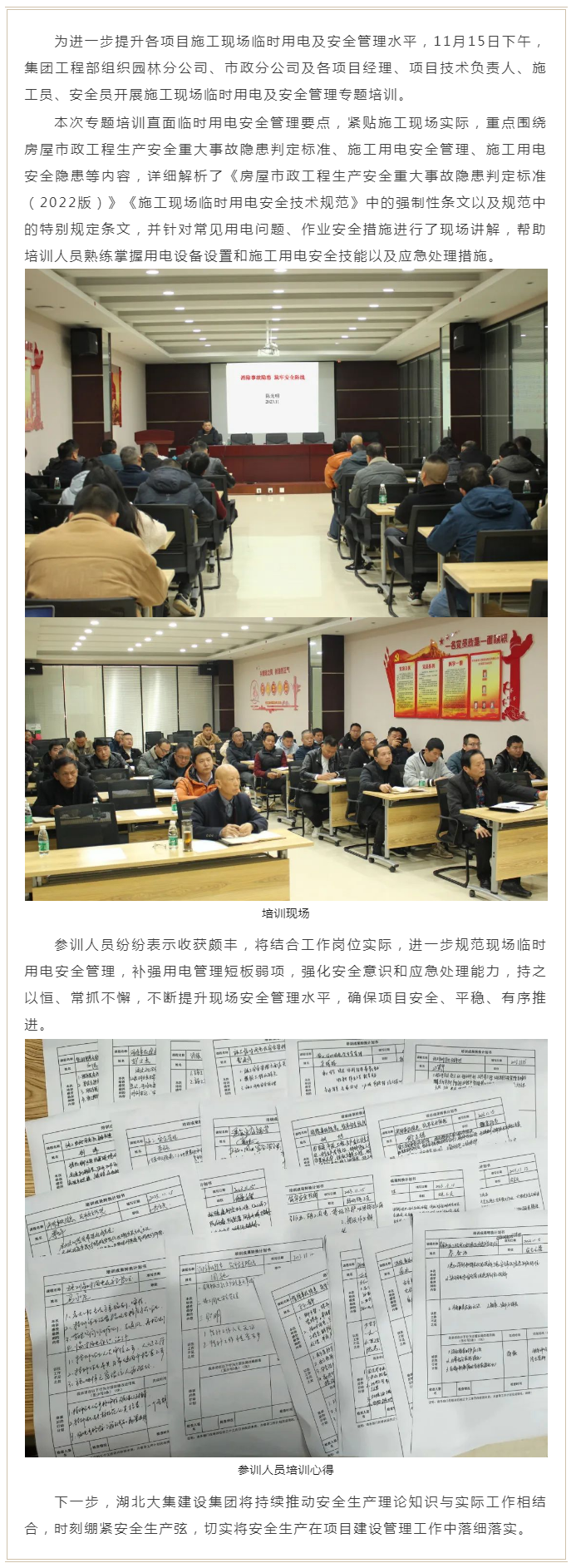 集團(tuán)公司開(kāi)展施工現(xiàn)場(chǎng)臨時(shí)用電及安全管理專題培訓(xùn)
