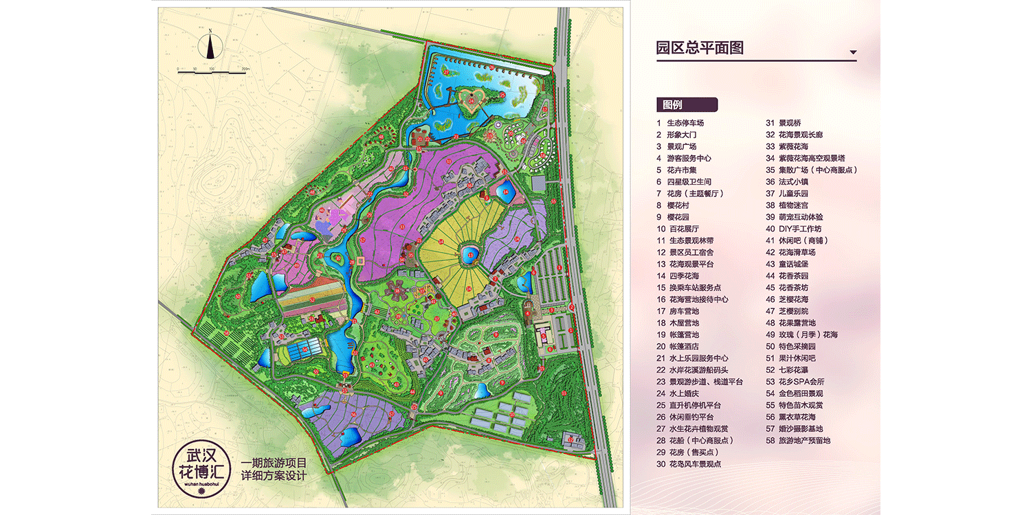 武漢花博匯總投資50億元,總規(guī)劃面積4800畝,邀請國際頂尖設(shè)計團(tuán)隊擔(dān)綱設(shè)計,以“村-田-林-溪-塘”場地肌理為基礎(chǔ),以創(chuàng)意型花海景觀打造為主題,竭力打造集花卉旅游觀光、文化傳承交流、創(chuàng)意農(nóng)業(yè)體驗、田園養(yǎng)生度假、親水休閑游樂、美麗鄉(xiāng)村體驗、花卉集中展銷等諸多功能于一體的全國性精品休閑度假綜合體,滿足城市人群回歸自然、城郊休憩、體驗野趣、養(yǎng)生度假等極致追求。