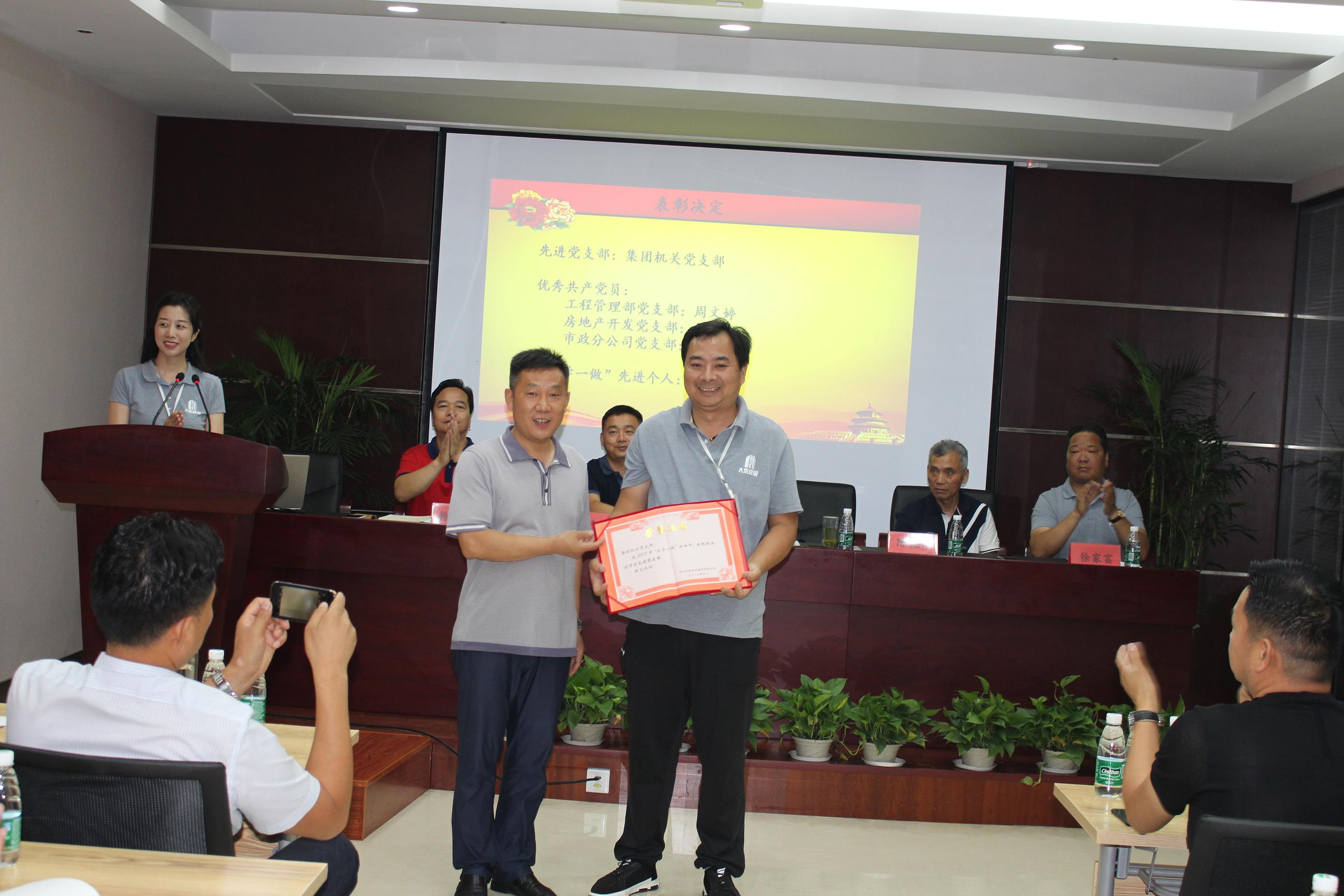 接著,由工程管理部黨支部書記徐家富同志宣讀中共湖北大集建設(shè)集團有限公司黨委《關(guān)于集團公司黨委和支部人員組成的決定》及《關(guān)于表彰先進(jìn)黨支部、優(yōu)秀黨員的決定》。