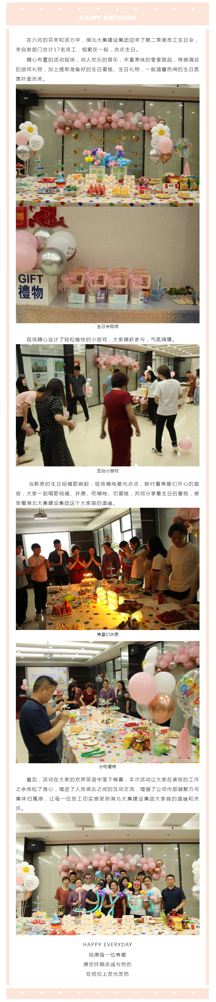 聚人心 凝合力|湖北大集建設集團開展2023年第二季度員工生日會
