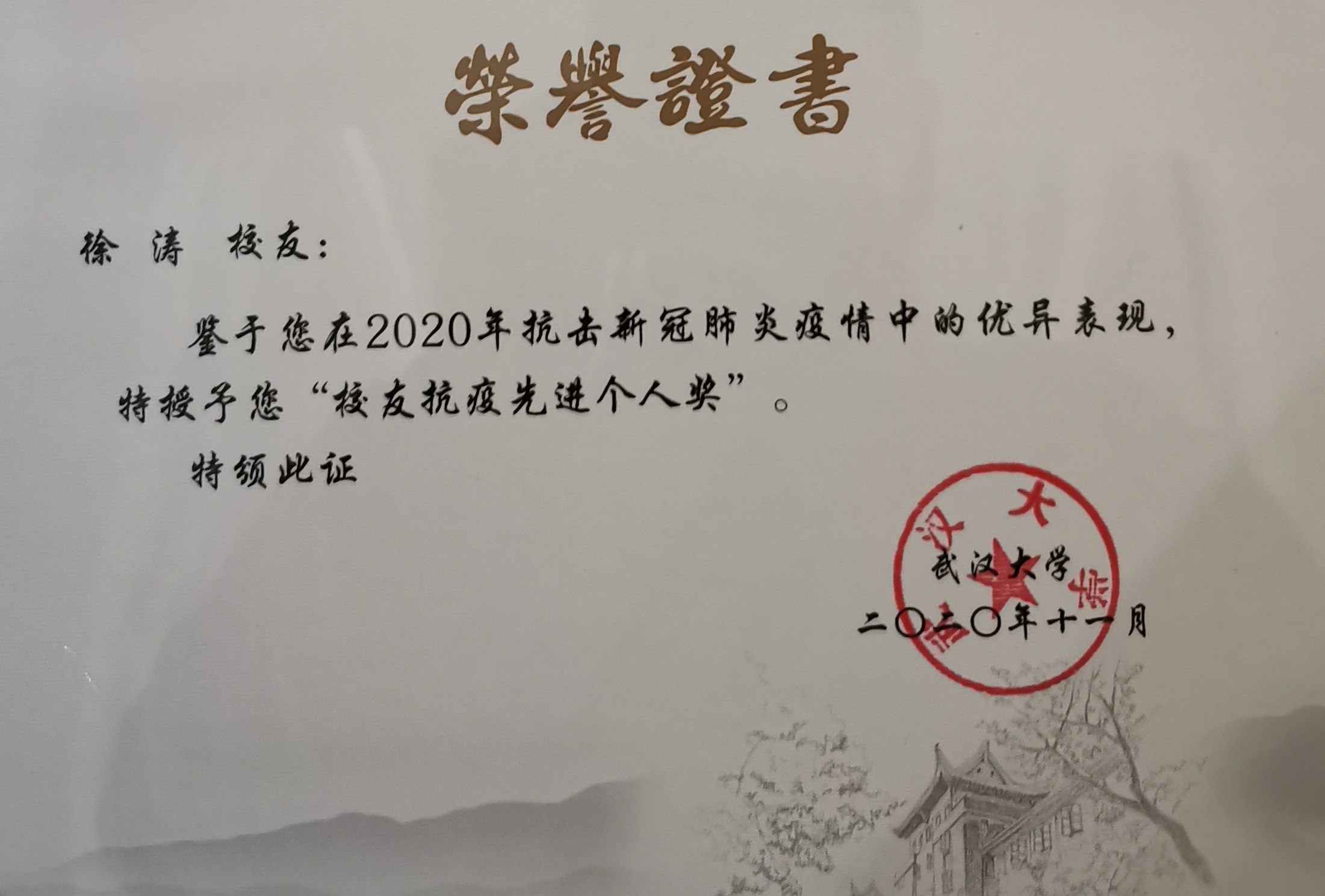 武漢大學(xué)“校友抗疫先進個人”表彰