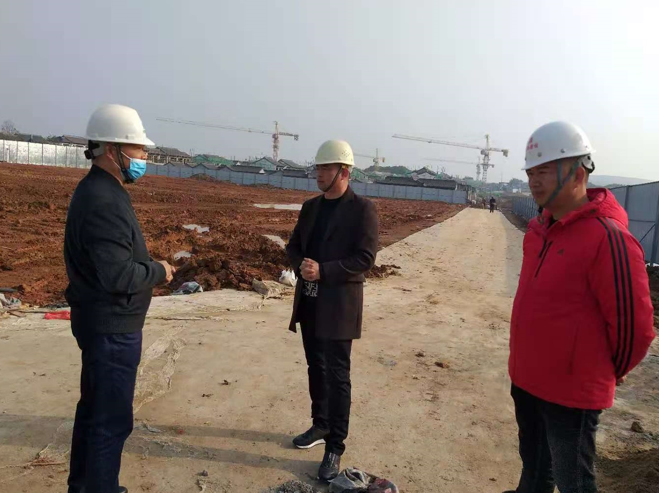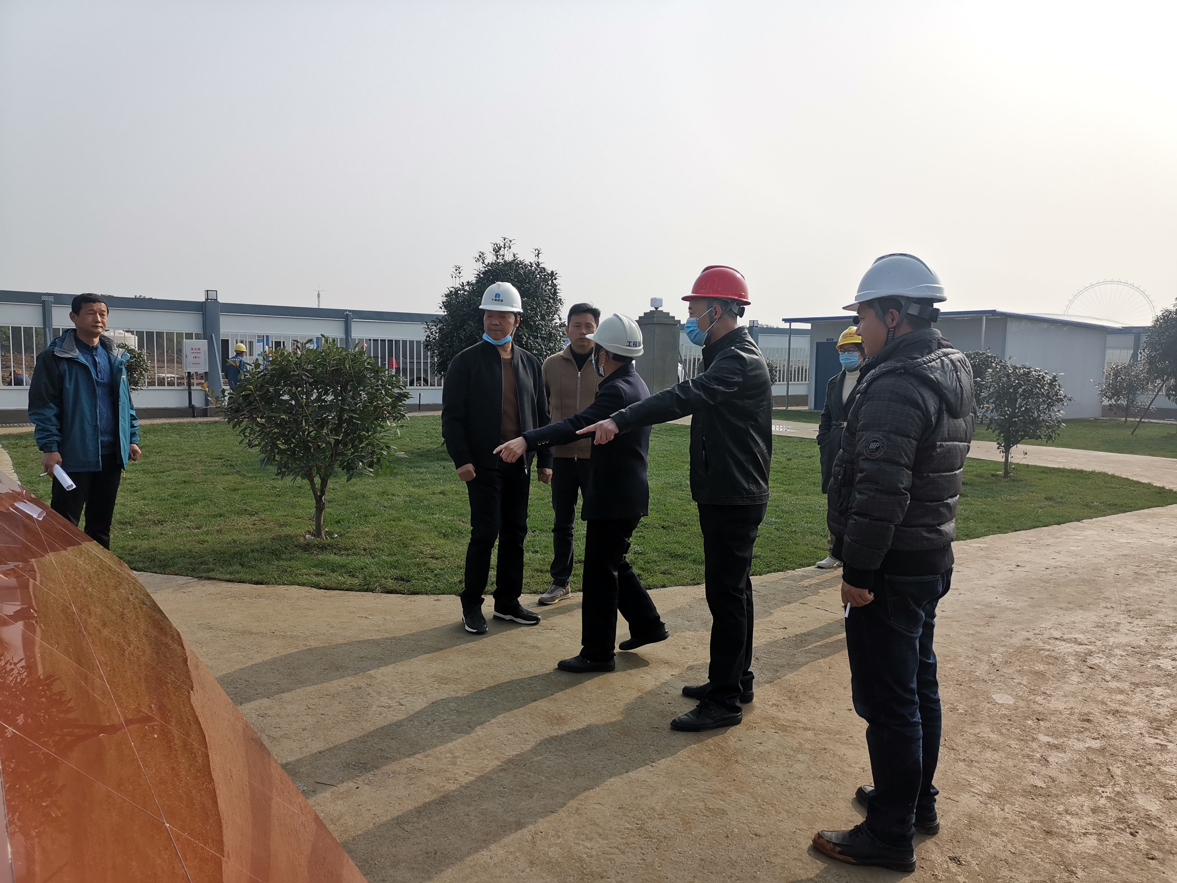 在大集G區(qū)蓮溪花園項(xiàng)目,徐副總一行首先在辦公區(qū)查看了工作環(huán)境,詳細(xì)了解目前項(xiàng)目的施工情況和進(jìn)度,同時(shí)對項(xiàng)目現(xiàn)場安全防護(hù)、農(nóng)民工宿舍等進(jìn)行仔細(xì)檢查,并對項(xiàng)目安全、質(zhì)量、進(jìn)度和疫情防控工作給予充分肯定。